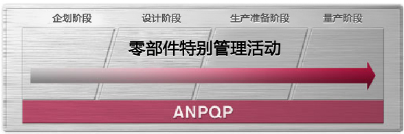 ※ ANPQP:Alliance New Product Quality Procedure的簡稱。以ISO/TS16949相關的"汽車產業供應商的基本質量系統"為依據,將日產汽車獨有的供應商質保標準化。