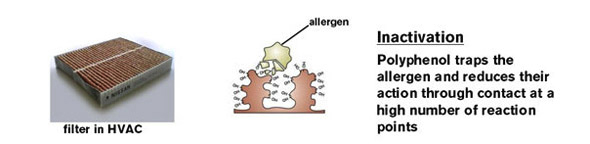 通過使用由添加了天然葡萄種子所含多元酚成分的纖維所制造的過濾器,可降低過敏源的活性。