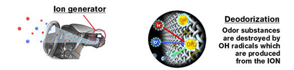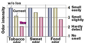 不僅僅增加了氣味減少功能(右圖),而且還增強了原有的除菌功能,還可強力分解及去除螨蟲產生的過敏性物質、霉菌及細菌等。