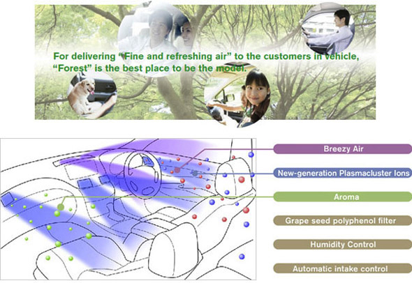 以森林的空氣為理想對象,在車內為乘客提供良好的空氣環境,讓人擁有好心情。