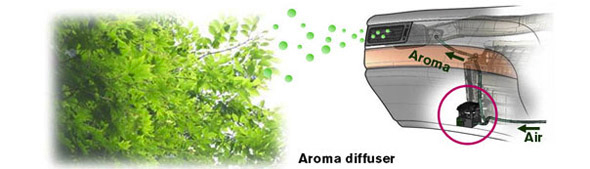通過出風口排出的微風,傳播芳香噴霧器噴出的"綠葉香氣"及"香木香氣"。