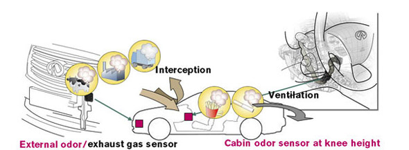 通過檢測車輛內外的氣味,自動控制進氣口的開關。