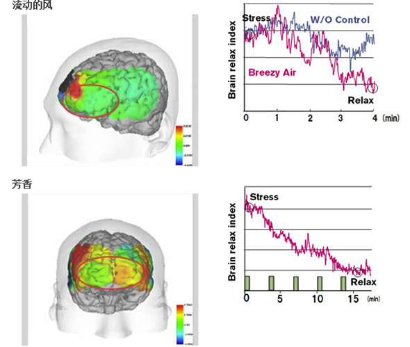 通過腦部活動計量儀可監測到達到"從過度緊張的狀態中放松,注意力及集中度均提高的放松狀態"。