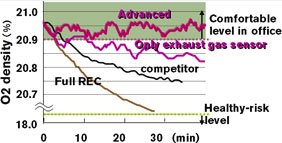 在防止令人討厭的氣體進入車內同時,積極地換氣將車內的氧氣濃度維持在較高的水平。