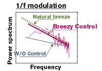 模仿自然風的"1/f流動"模式,控制出風量營造出自然風吹動的環境。
