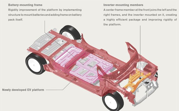 新研發(fā)的電動車專用平臺,應(yīng)用在于2010年12月上市的"日產(chǎn)LEAF"上。 由于是針對電動車而設(shè)計研發(fā)的,因此在汽車底部配置了較薄的薄片結(jié)構(gòu)電池,使得車內(nèi)空間非常寬敞。