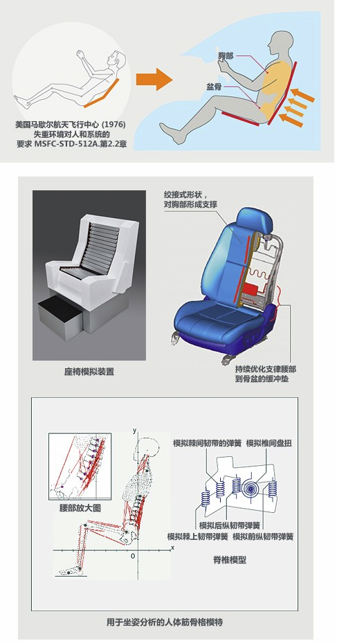 "脊椎支撐功能的舒適座椅"是日產汽車對人體進行研究的技術結晶