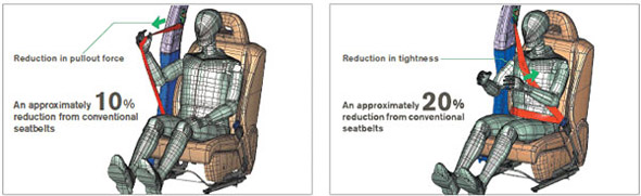 日產(chǎn)研發(fā)出低摩擦座椅安全帶,通過將座椅安全帶的帶子軟化,在拉伸出來時(shí)輕輕扣上幾乎感覺不到有任何壓迫感。
