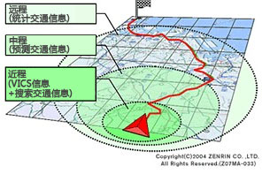 最佳路線搜索功能可指引花費最短時間即可到達目的地的路線,并提供高精度的到達預測時間。并將從本車位置到達目的地的距離三等分,根據每個路段情況利用最精確的交通信息搜索路線。