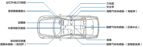 通過裝在儀表內(nèi)的攝像頭對(duì)駕駛者的面部進(jìn)行監(jiān)測,判斷其清醒度。有發(fā)現(xiàn)打瞌睡等可能是酒后駕駛的反應(yīng)時(shí),就會(huì)通過聲音及車載導(dǎo)航儀畫面的顯示向駕駛者發(fā)出警報(bào)。同時(shí)通過收緊安全帶等方式進(jìn)行更強(qiáng)烈的報(bào)警。